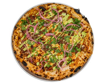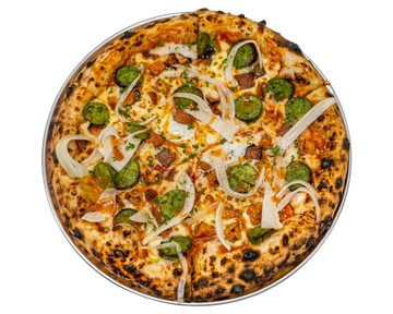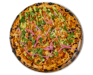 Masala sauce, mozzarella, tikka chicken/soya, jalapenos, pickled red onions, cilantro