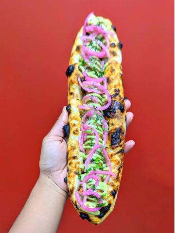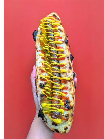 Our take on "pizza-dogs" using artisanal local-made footlong sausages [Beef/pork/chicken/vegan] on a house sourdough bun