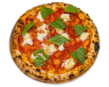 Tomato sauce, cherry tomatoes, buffalo mozzarella, basil, parmesan, Sicilian olive oil