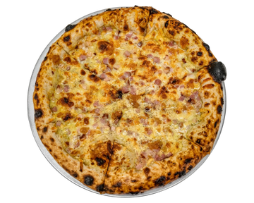 White sauce, smoked mozzarella, smoked gouda, smoked bacon, parmesan, fried garlic, black pepper