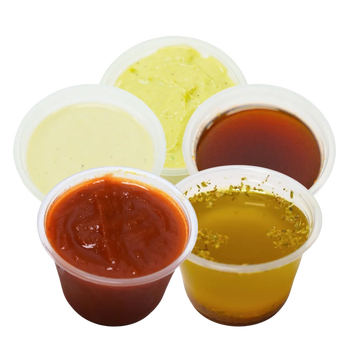 Garlic & Herb Aioli | Hottie Honey | Sicilian Olive Oil (V) | Calabrian Chili Crisp (V) | Dill Pickle Ranch | Spicy Marinara (V) | Gochujang Mayo (V)